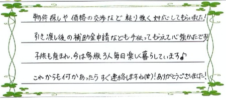 物件購入後に不具合があった場合の売主とのやりとりなどの対応や助成金の申請、外構・内装工事、保険のことなど、なんでもフォローしております。また、お気軽にご相談いただける関係性にづくりに力を入れています。