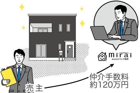 お客様からではなく、売主であるハウスメーカーなどから約120万円の仲介手数料をもらっているため、お客様から仲介手数料0円を実現しております。実は、当社だけでなくどの不動産会社も売主から仲介手数料をもらっています。
