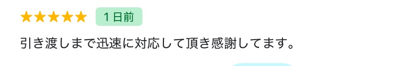 引き渡しまで迅速に対応して頂き感謝してます。