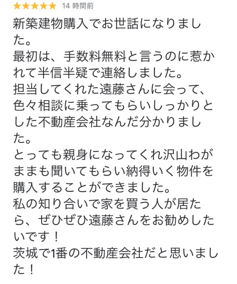 私の知り合いで家を買う人が居たら、ぜひぜひ遠藤さんをお勧めしたいです!